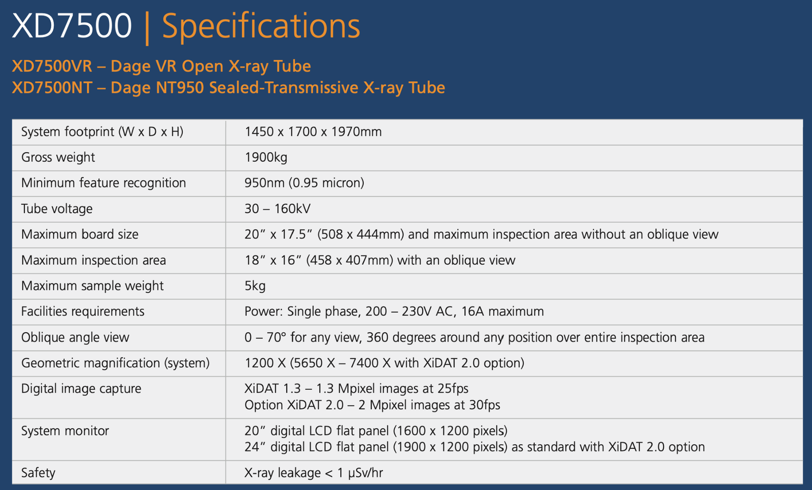 🔶 Nordson DAGE XD7600NT Ruby X-Ray Inspection Machine Specifications